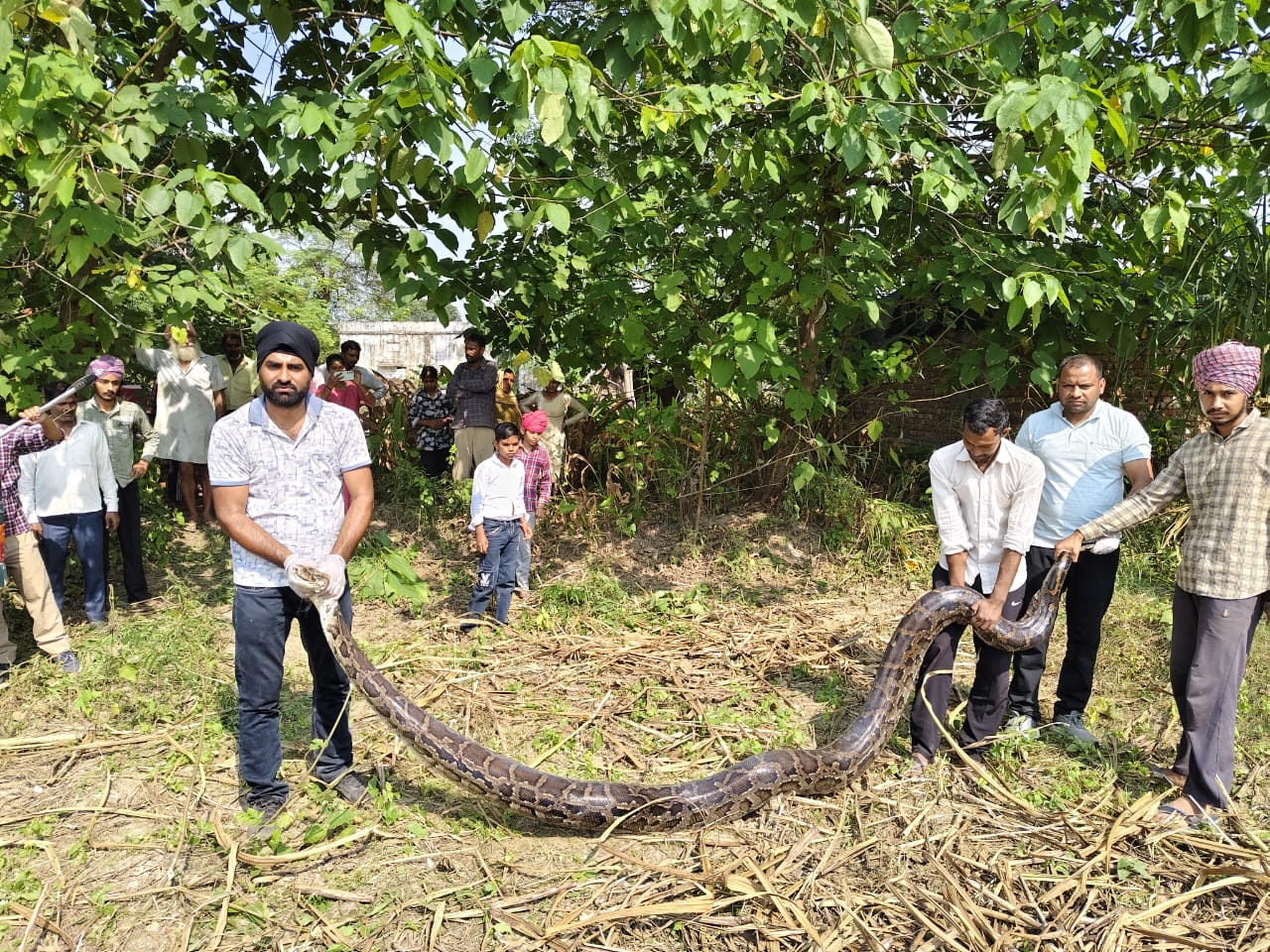 आबादी में घूमने निकले अजगर को किया रेस्क्यू